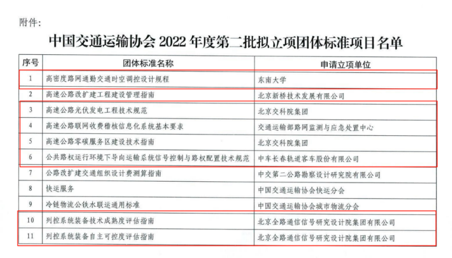 6月14日-17日,中国交通运输协会(以下简称协会)通过线上视频会议形式,组织召开“2022年度第二批团体标准立项审查会”。审查会上,与会委员、专家审阅了团体标准申报的相关材料,听取了申报单位对团体标准立项情况的相关汇报,对申报立项的团体标准的必要性、可行性和前期准备工作进行了质询讨论,提出了全面客观的审查意见,为团标项目的定位、应用指明了方向,形成了审查会议纪要。根据《中国交通运输协会团体标准管理办法》相关规定,审查专家组一致同意37个项目的立项申请,其中,《高速公路零碳服务区建设技术指南》等27个项目由新技术促进分会发起(如下图)。目前协会正在对拟批准立项项目进行公示。